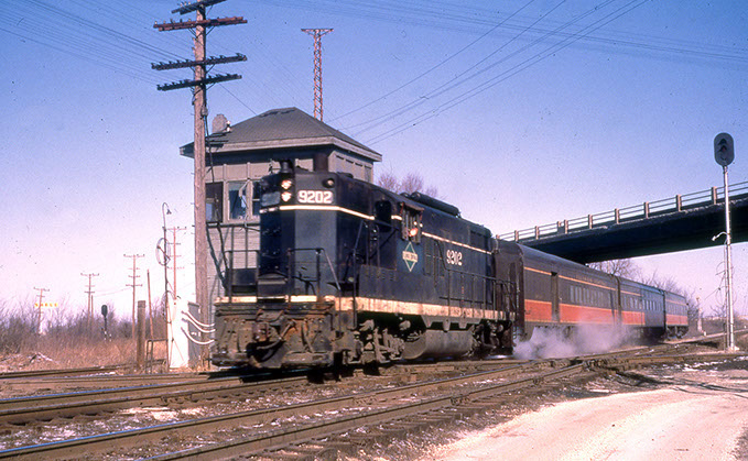 The southbound “Governor’s Special” is seen passing Starnes Tower on the north side of Springfield, IL in the summer of 1968.