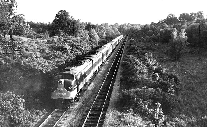 The City of New Orleans is northbound near Makanda, IL in July, 1963. While the Champaign District had 100 mph territory, the terrain south of Carbondale had many restricted curves and few tangents in this area.