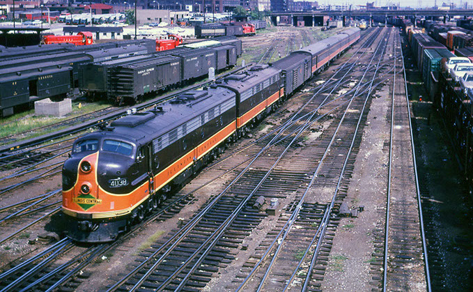 Built in November, 1941 by the Electro Motive Corp, these four E-6 models were built for the “PL” and had the train name upon them. They initially were assigned to this train, but in subsequent years would be assigned to any and all passenger trains throughout the IC system.