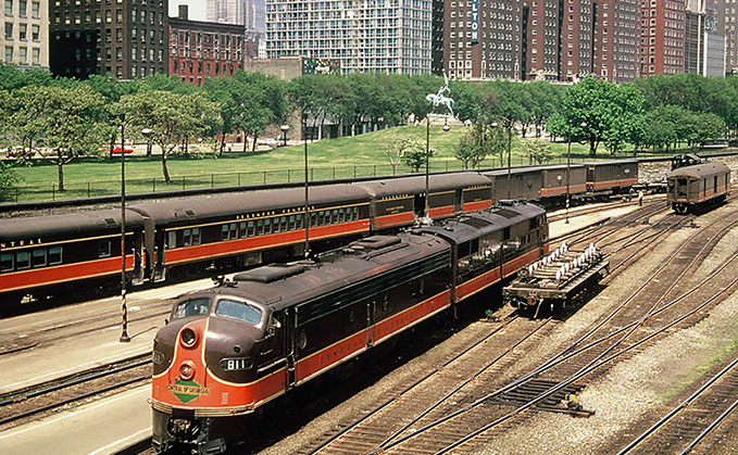 IC 4001. Still going strong, the 4001 is seen at Chicago’s 27th Street Roundhouse. This locomotive, and sister 4003, had a long career until April 1971, just a few months short of 30 years’ service.