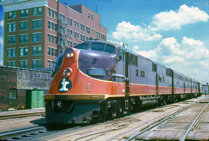 IC 4001 "City of New Orleans" has just arrived Central Station. There were only two E-6 locomotives in service during the final years, 4001 and 4003, both built for the streamliner "Panama Limited" in 1942. Taken in June,