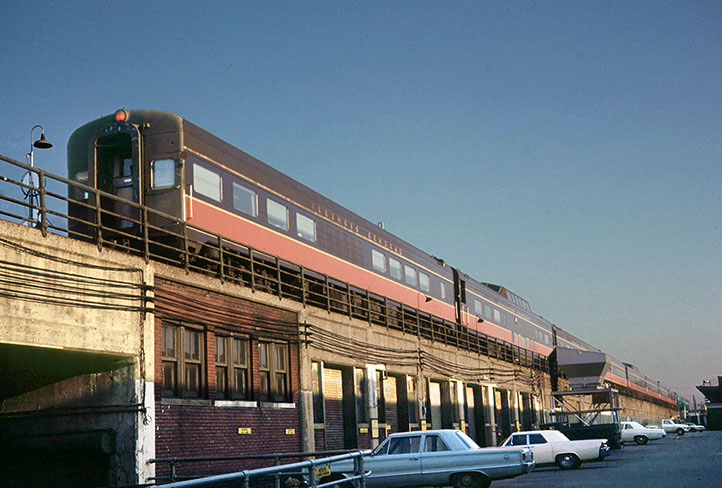 *IC 4041 is just leaving Central Station with No 4 "Mid-American" in May, 1968. Note the Flexi-Van of containerized mail.