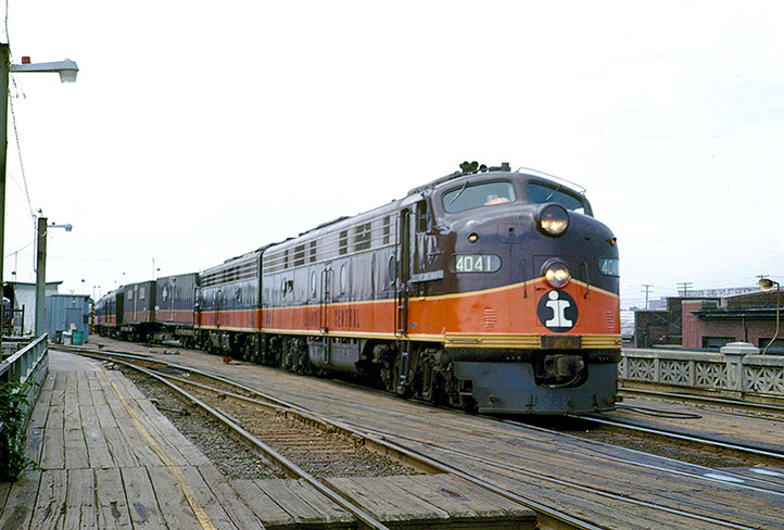 *IC 4041 is just leaving Central Station with No 4 "Mid-American" in May, 1968. Note the Flexi-Van of containerized mail.